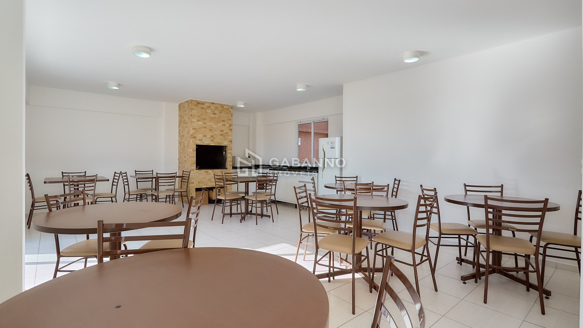 Salão de festas com churrasqueira