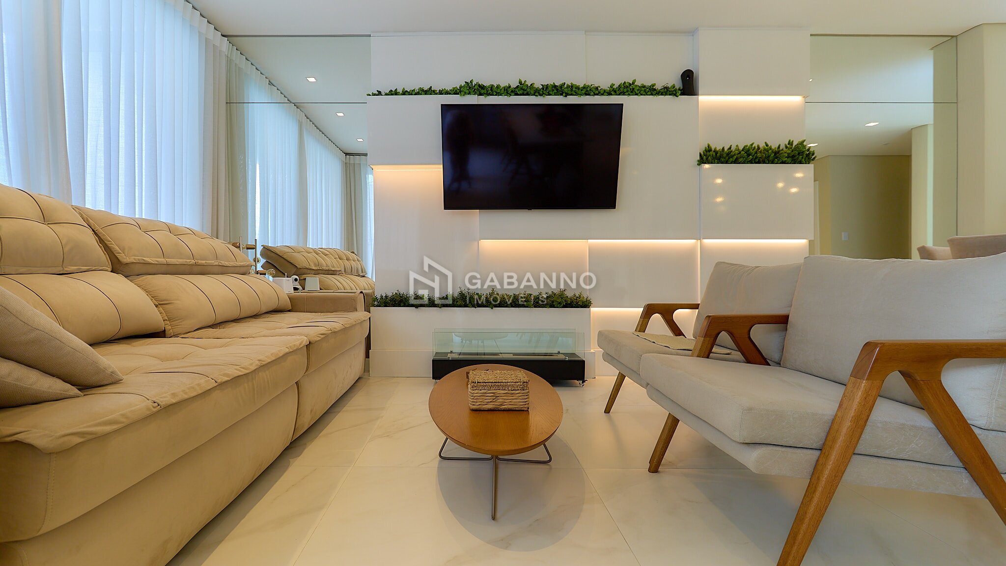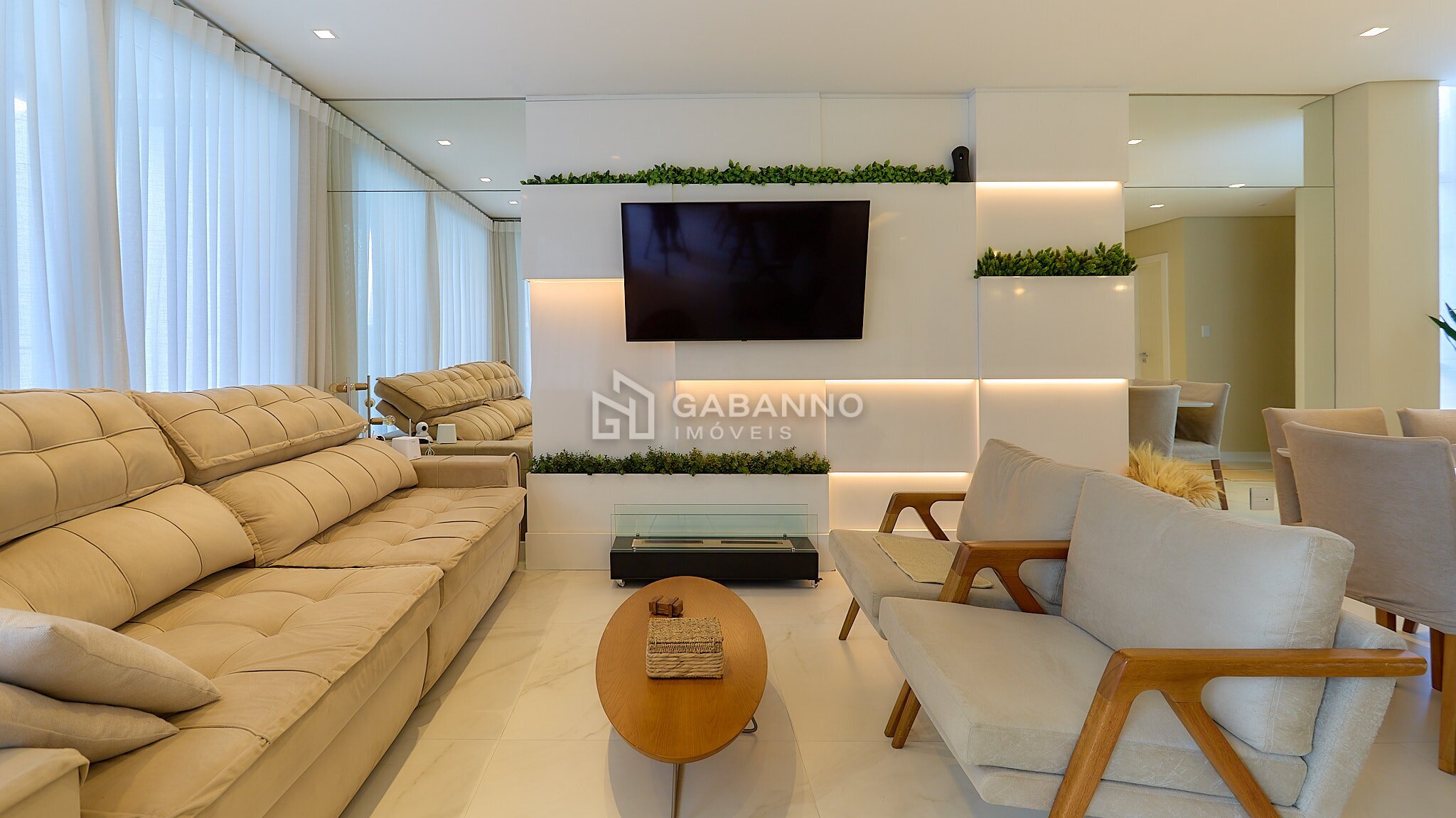 1Living amplo, integrado para 3 ambientes