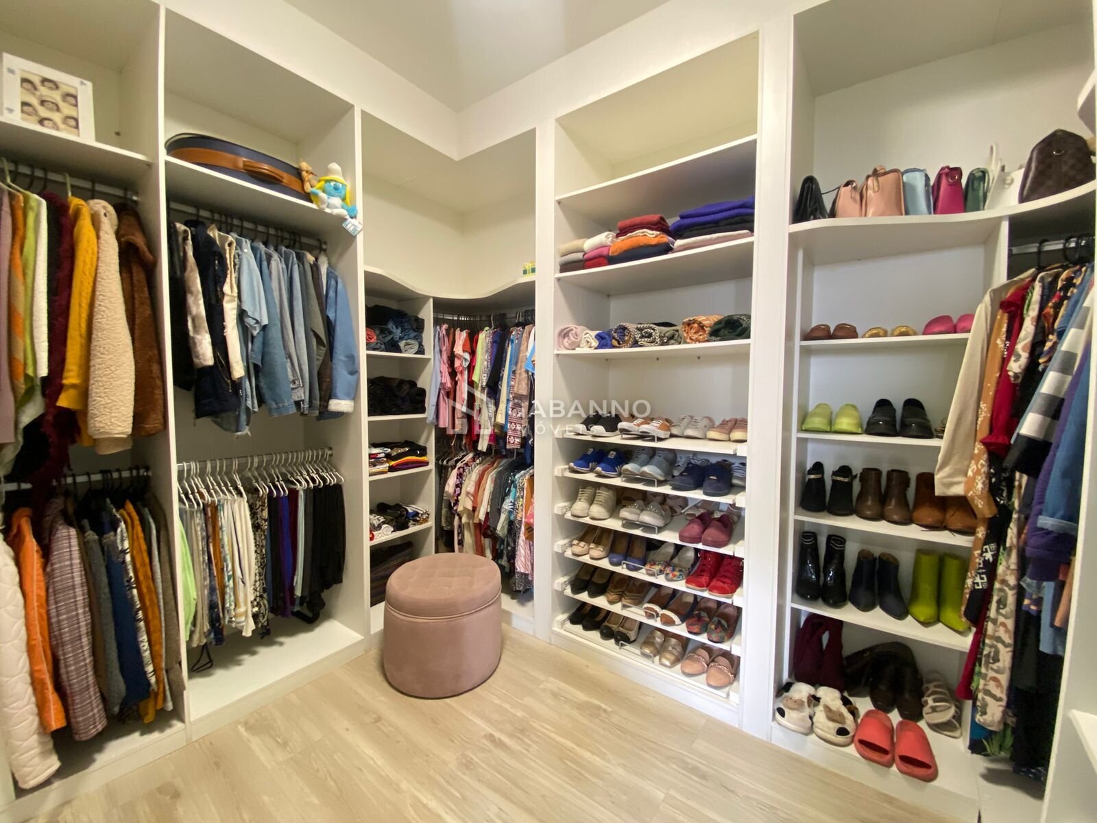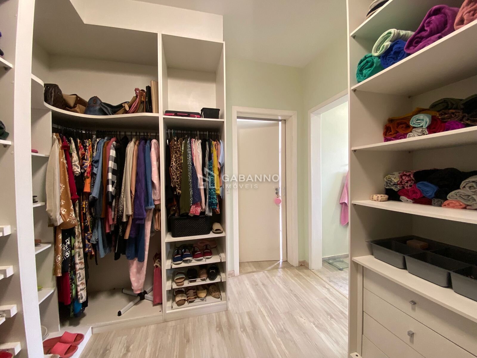 Uma suíte de casal com um lindo closet, armário e banheiro muito espaçoso e confortável, já com box em vidro e armário;