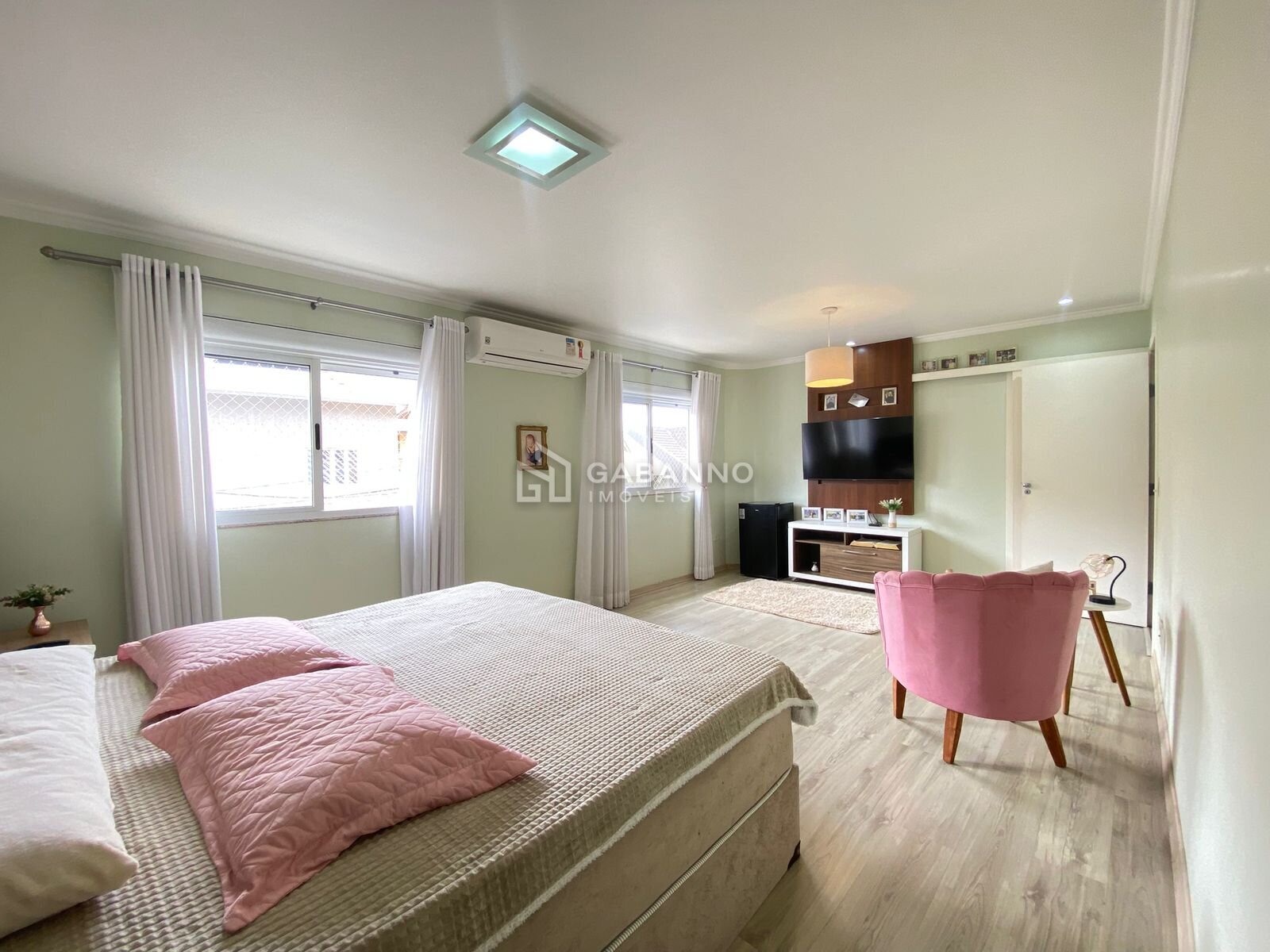 No segundo pavimento, conta com área íntima, composta por três amplas suítes, todas com ar condicionado e janelas com venezianas blackout, sendo: