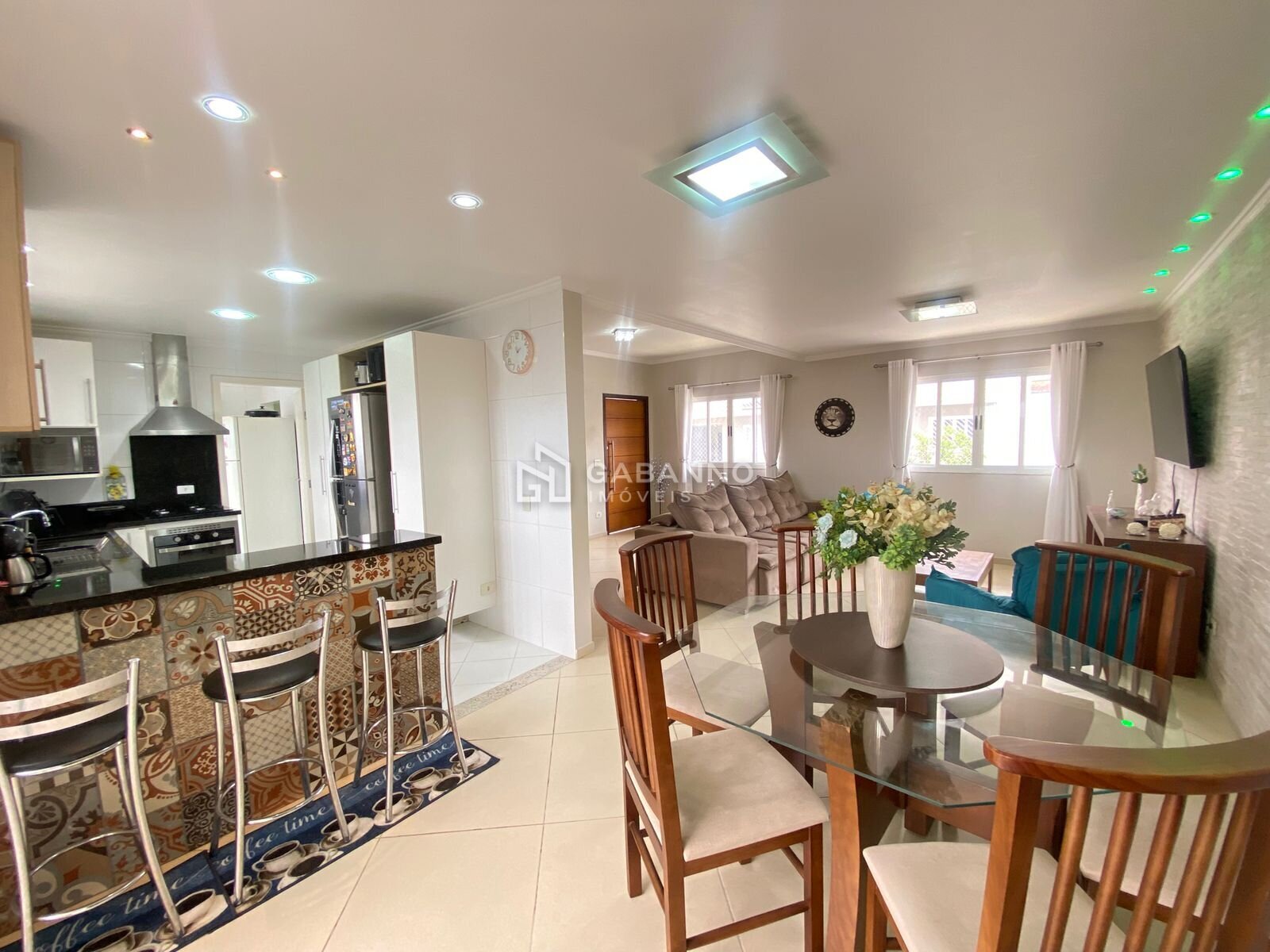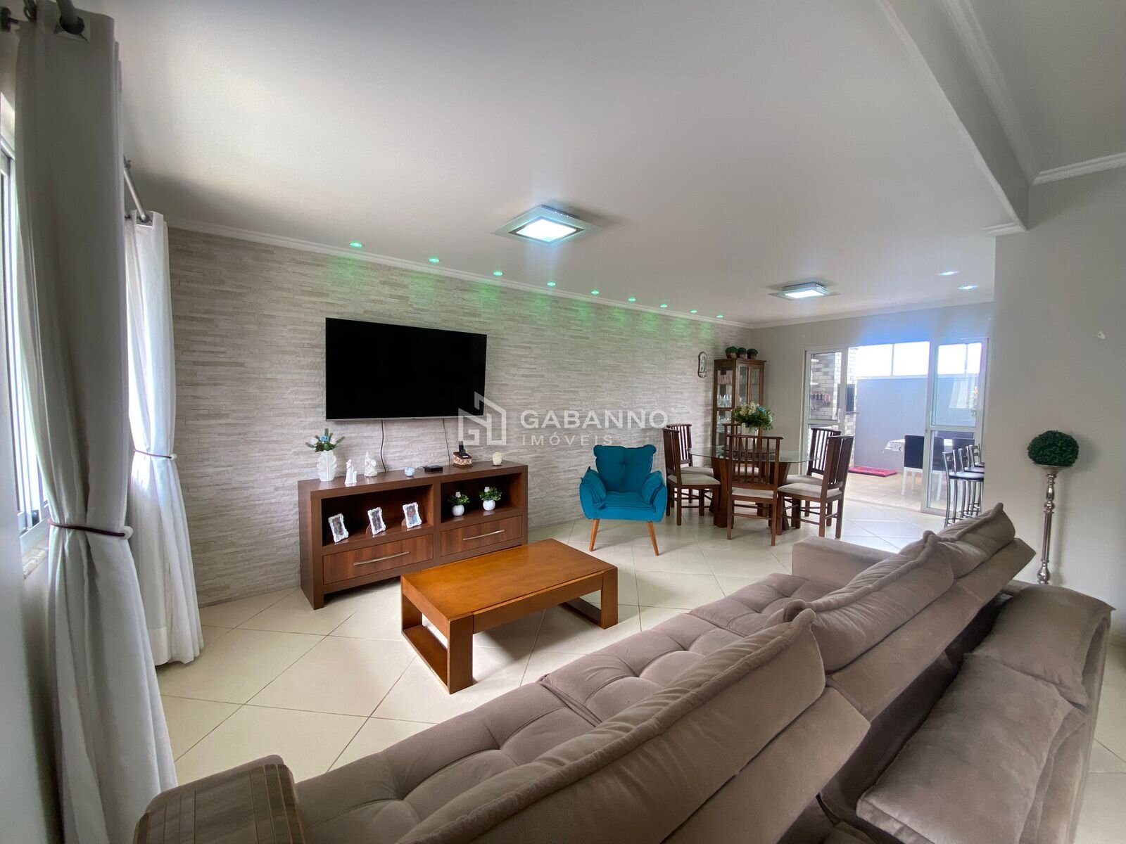 Conta com ampla sala em L, para até 3 ambientes, estar, sala de tv e jantar, totalmente integrada com a cozinha e espaço gourmet;